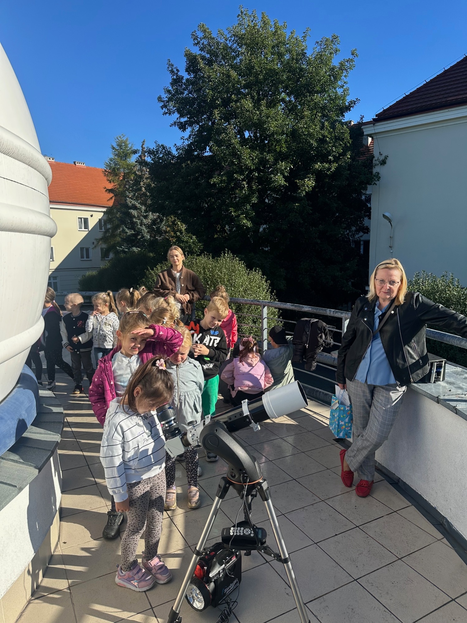 - WIZYTA W ASTROBAZIE  - Dnia 24 września 2025 roku brodnicką Astrobazę przy I LO odwiedziły dzieci z Niepublicznego Przedszkola Akademia Przedszkolaka w Brodnicy wraz z opiekunkami . - Przedszkolaki odbyły swoją kosmiczną podróż – słuchając opowieści o wszechświecie oraz dokonały pierwszych w swoim życiu teleskopowych obserwacji Słońca.