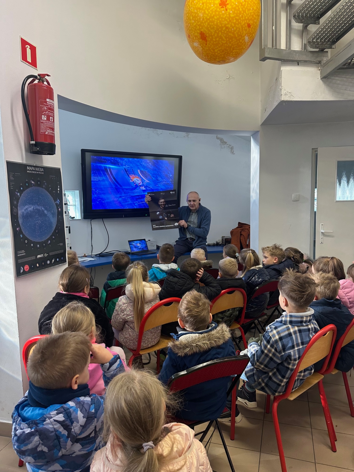 - GĄSKI I LISKI W ASTROBAZIE        - Dnia 28 lutego 2025r. odwiedziły nas dwie grupy sześciolatków z przedszkola nr 6 w Brodnicy. - Wiersze o kosmosie, planetach wprowadziły dzieci w nierozerwalny temat przestrzeni i rozbudziły ich wyobraźnię. Wielu odważnych astronautów przypomina nam, że dziecięce fantazje i marzenia o gwiazdach i otaczającym nas wszechświecie mogą stać się realne do osiągnięciami. - Naukę o Układzie Słonecznym połączyliśmy z zabawą ruchową. Dzieci wybrały planetę, którą chciały reprezentować i ustawiając się w odpowiedniej odległości od Słońca, symulowały ruch orbitalny. - Dziękuję za wizytę i serdecznie zapraszam.