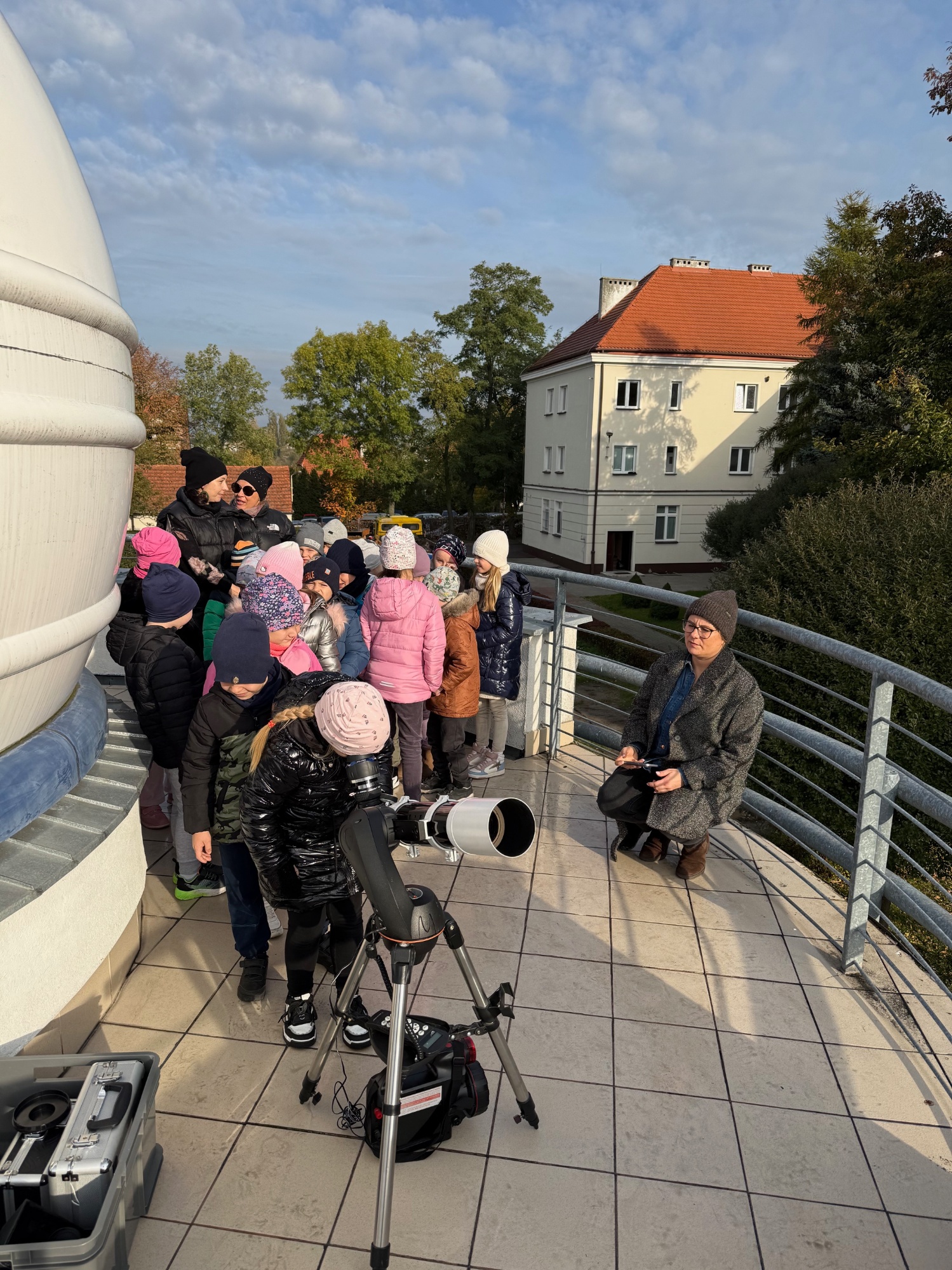- FUNDACJA ALE SZKOŁA  - Dnia 3 listopada 2023r. brodnicką astrobazę odwiedzili uczestnicy fundacji Ale Szkoła, która wspiera dzieci w edukacji domowej. Dzieci zapoznały się ze sprzętem obserwacyjnym, zobaczyły zdjęcia najciekawszych zjawisk astronomicznych, zwiedziły budynek. Nie zabrakło opowieści o kosmosie: Czym jest Słońce i planety? Dlaczego Słońce świeci?...